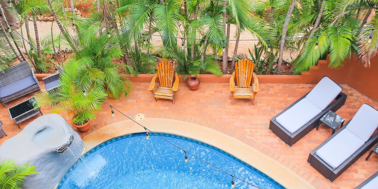 The poolside view at Peace Retreat, in Playa Negra, Costa Rica